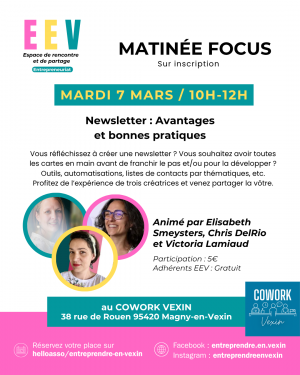 🔹Mardi 07 avril | 10h-12h : Matinée Focus : « La Newsletter, avantages et bonnes pratiques »
