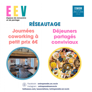 Les Journées Coworking et déjeuners partagés du mois de novembre auront lieu les 14, 18 & 27 novembre. Pour les journées Coworking, nous vous proposons de venir (re)découvrir le plaisir de travailler au Cowork Vexin à petit prix (6€ la journée) Mise à disposition d'une place dans l'espace de travail partagé (chacun apporte son ordinateur […]